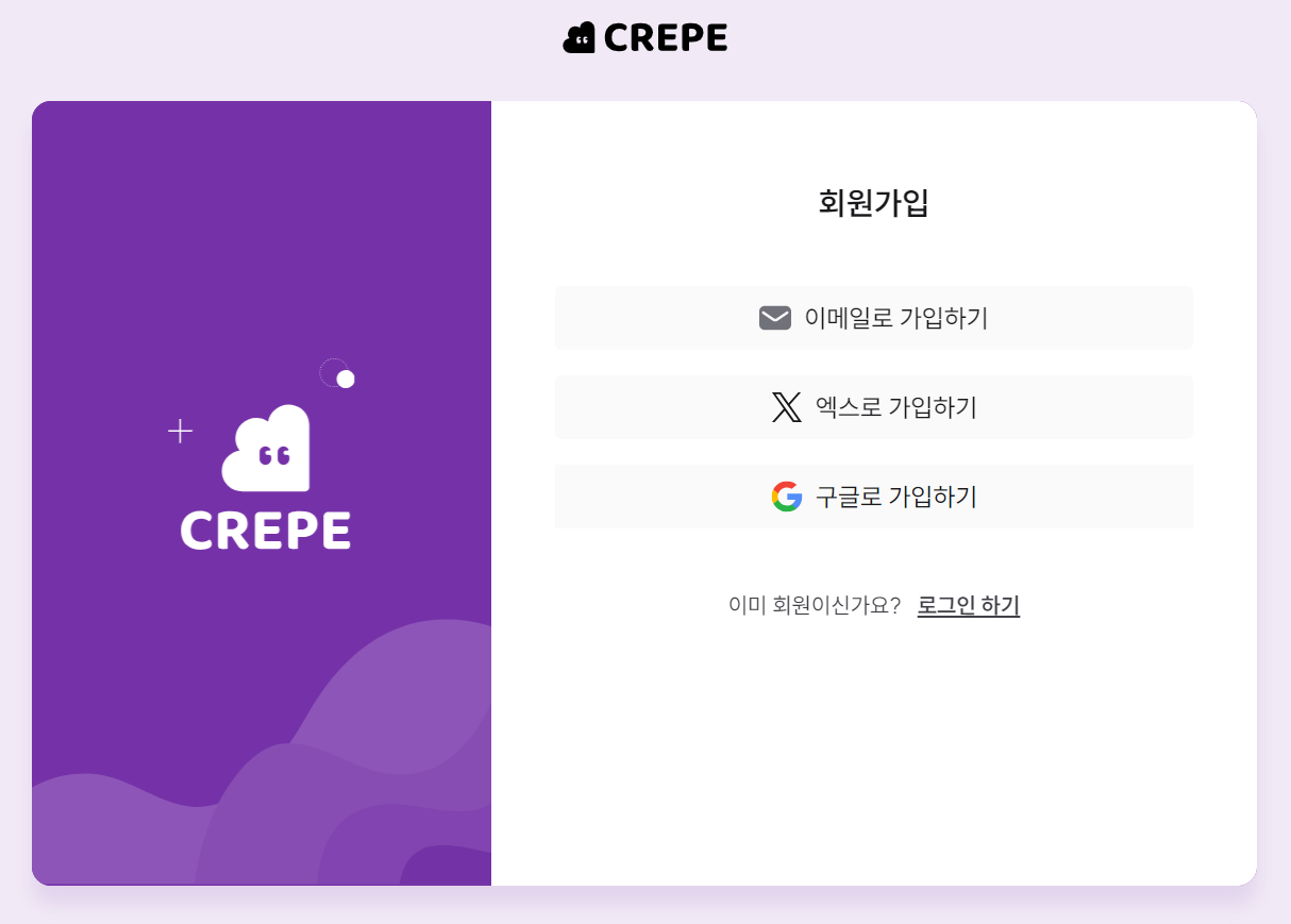 - After signing up this way, your X account will be linked to CREPE, enabling quick login via X.
