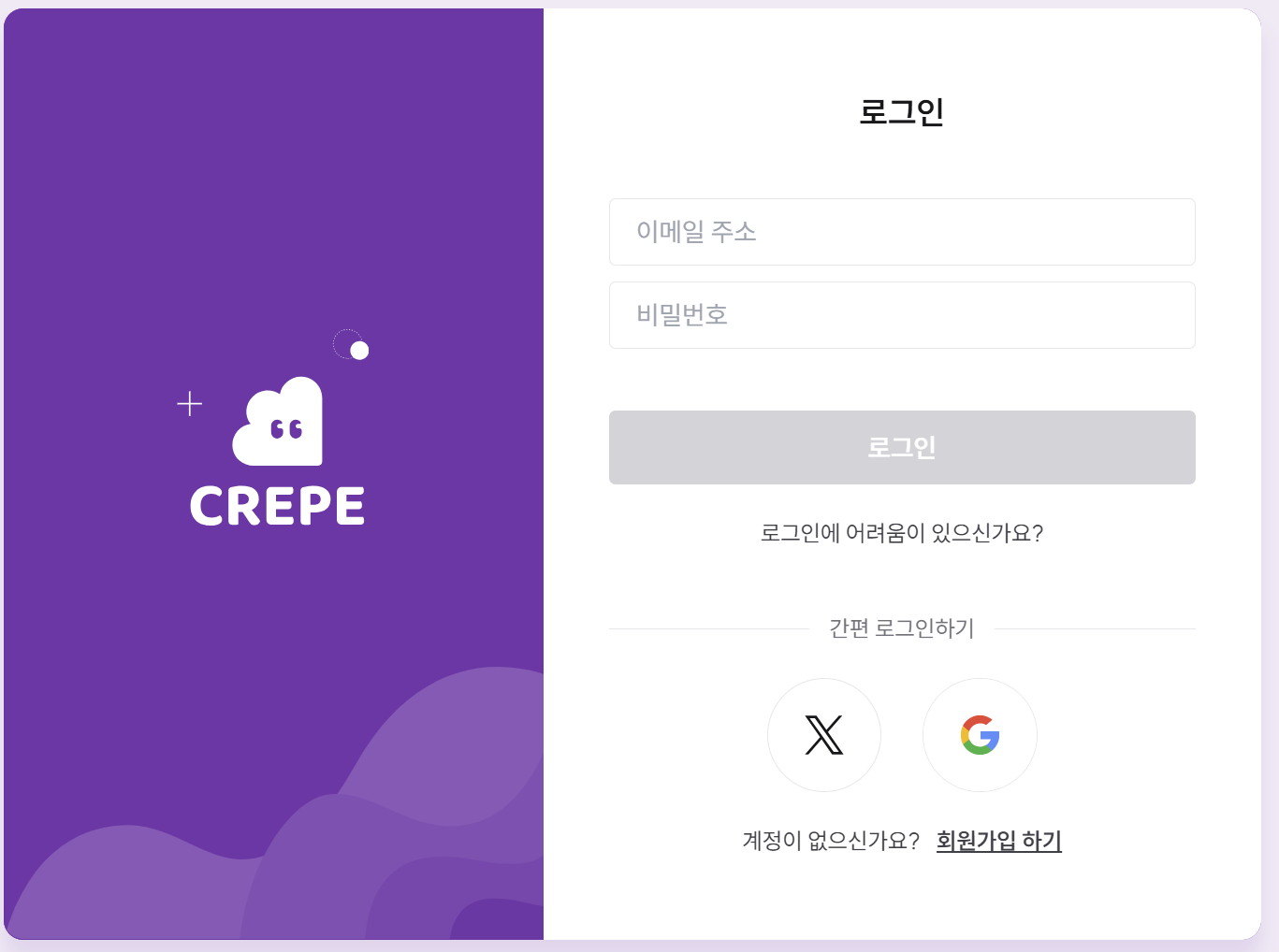 - SNS 계정(X 계정 혹은 구글 계정)이 정지되어도, 해당 SNS 계정과 연동되었던 크레페 계정을 찾을 수 있어요.